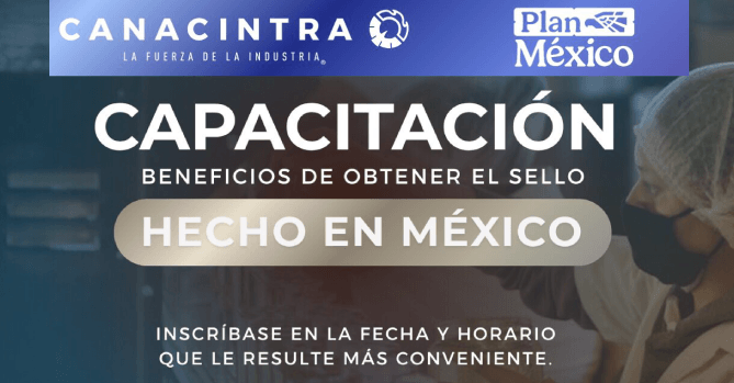 \"BENEFICIOS DE \r\nOBTENER EL SELLO HECHO EN MEXICO\". \r\n- FECHA: 20 O 22 OCTUBRE 2025 \r\n11:00 HRS.