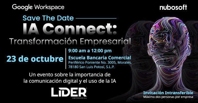 \"SAVE THE DATE IA CONNECT: \r\nTRANSFORMACIÓN EMPRESARIAL\" FECHA: \r\n23 DE OCTUBRE 9:00 A 12:00 PM \r\nESCUELA BANCARIA COMERCIAL