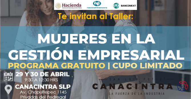 TE INVITAMOS A PARTICIPAR EN EL TALLER “MUJERES EN LA GESTIÓN EMPRESARIAL”, ESTE 29 Y 30 DE ABRIL, CON DURACIÓN DE 6 HORAS.